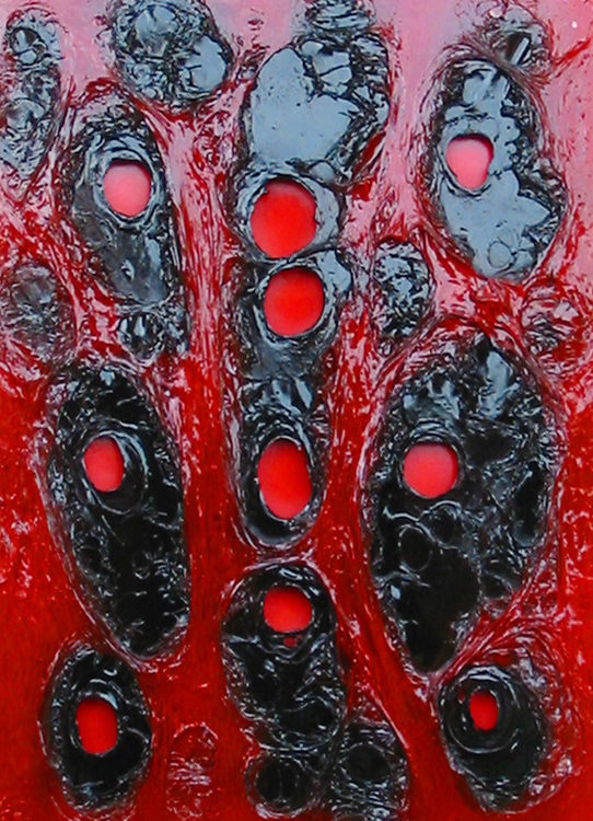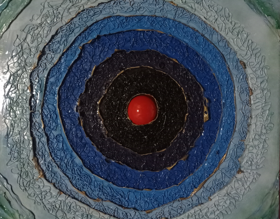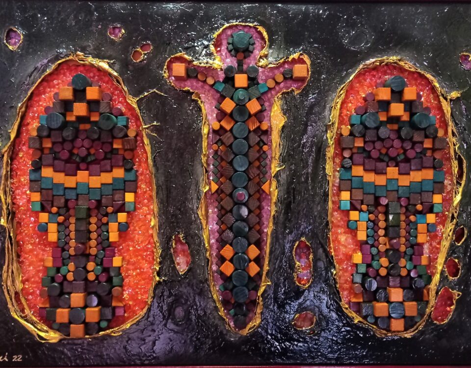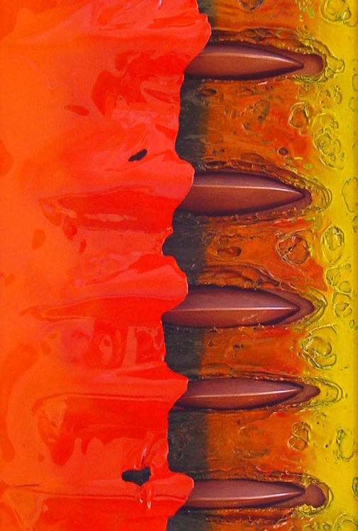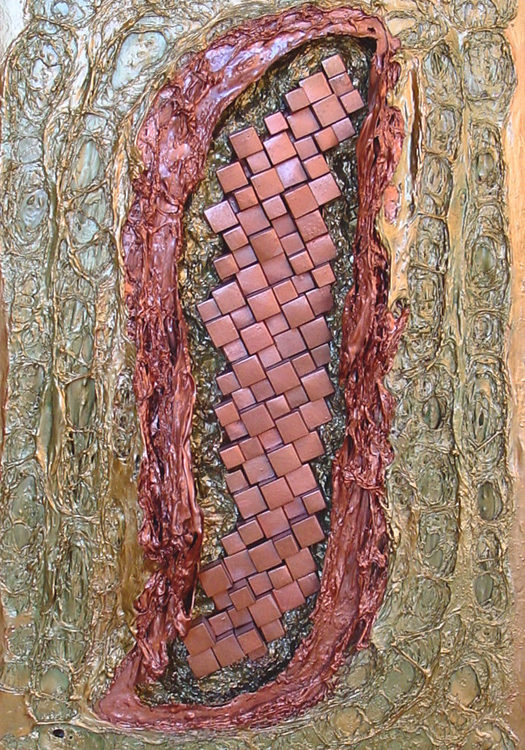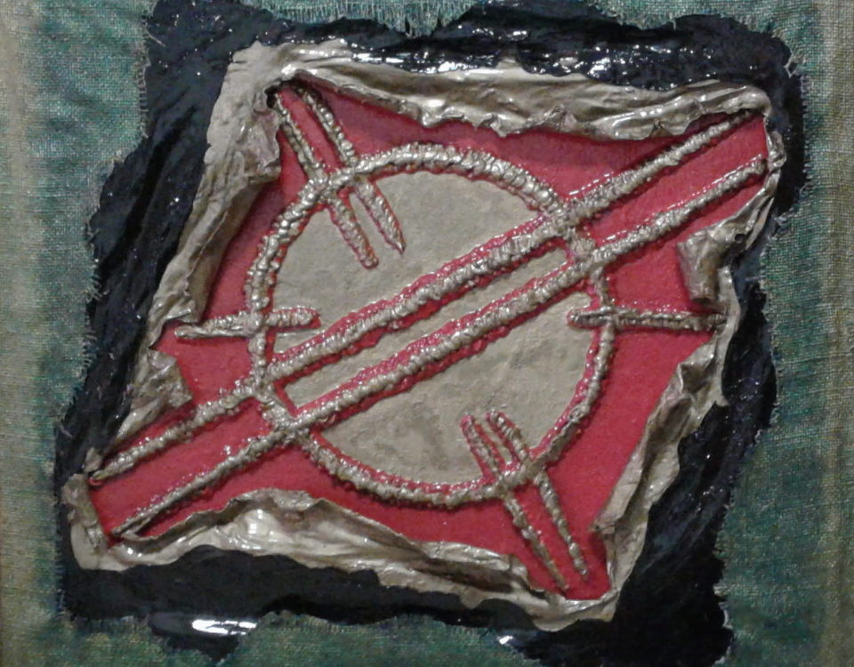 - “Cristallo perfetto che emergi costretto da ruvida roccia racconti di vite valenti rubate da un triste destino“ Anno 2003 – Tecnica mista su materie plastiche