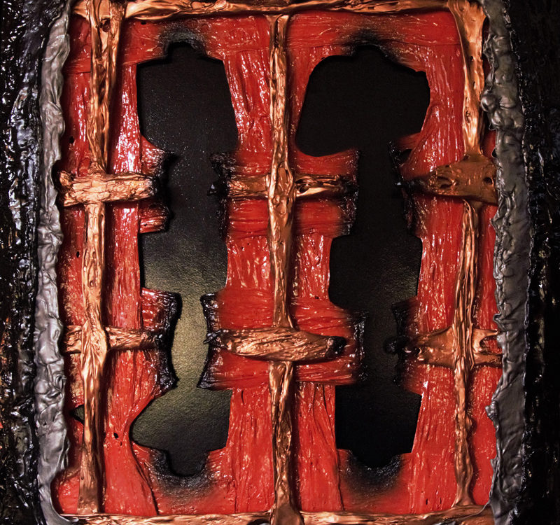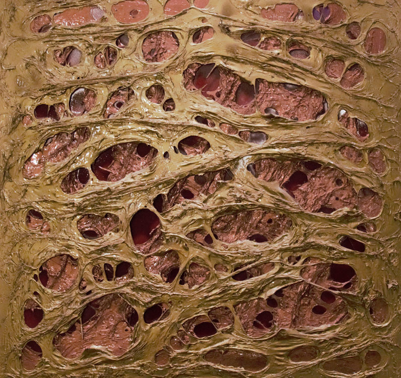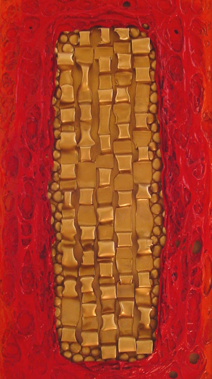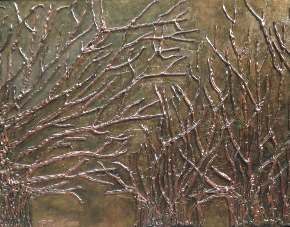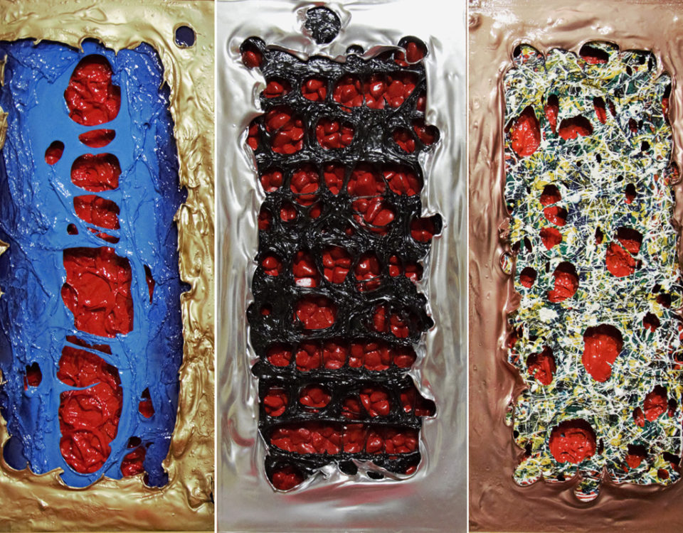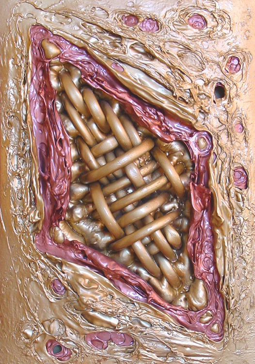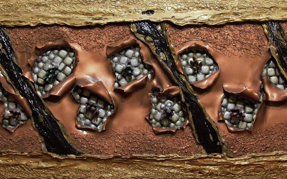 - “Cristallo perfetto che emergi costretto da ruvida roccia racconti di vite valenti rubate da un triste destino“ Anno 2003 – Tecnica mista su materie plastiche