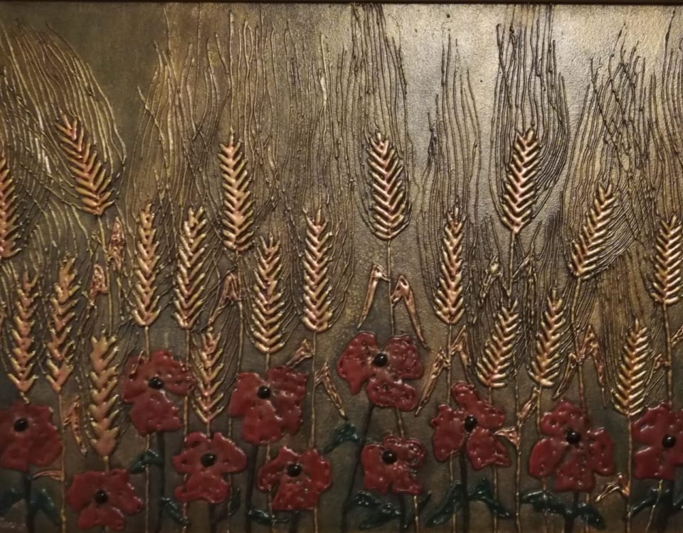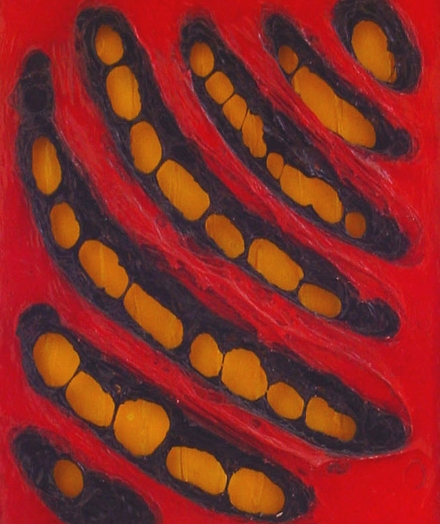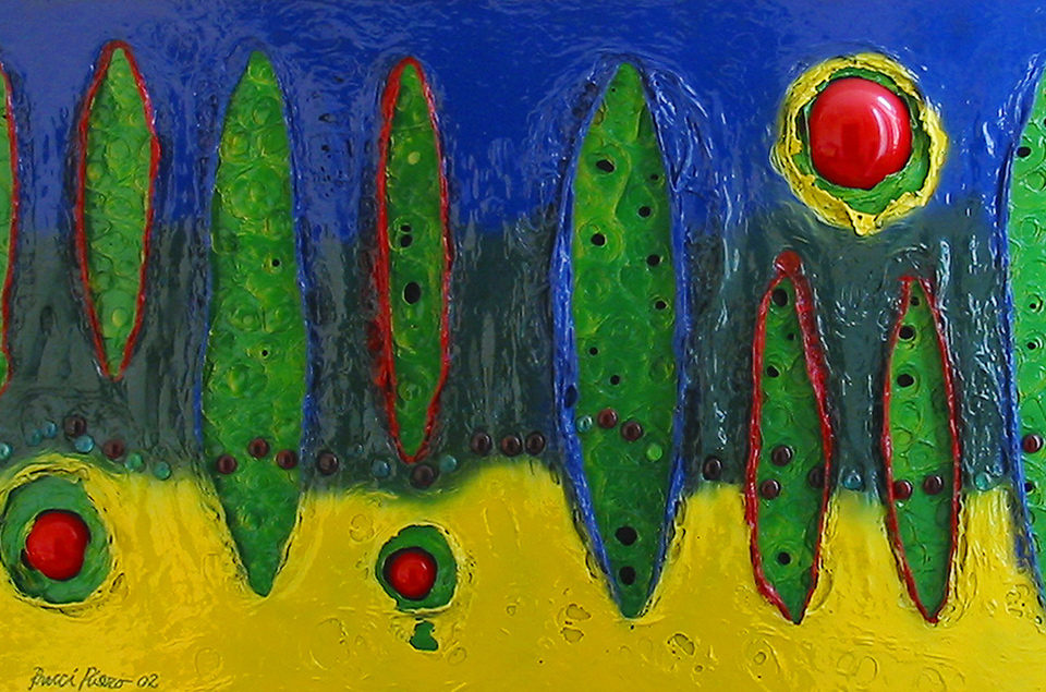 - “Averti accanto nell’attraversare il bosco sembrò soltanto un passar tra i campi” Anno 2002 – 132×72 Tecnica mista su materie plastiche