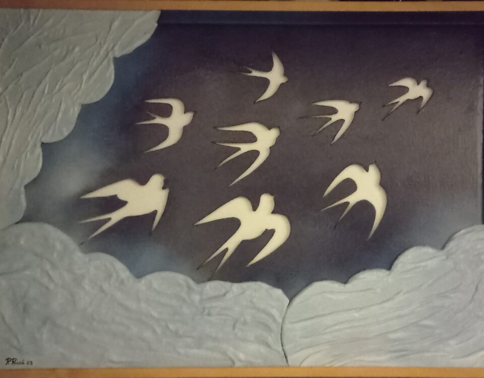 - “Sorpreso mi accorgo di un battito d’ali veloce e leggero vibranti colori ne smuovono l’aria rapito lo seguo con sguardo sognante” Anno 2022 – 100×70 […]